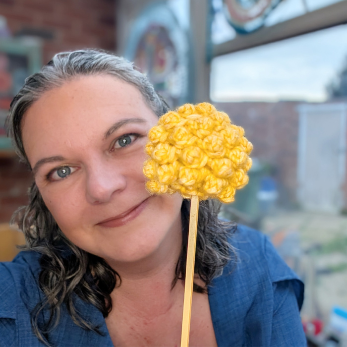 I hope you enjoy making this crochet craspedia as much as I did. Whether you see it as a little burst of sunshine or a piece of popcorn-on-a-stick, it adds such a cheerful texture to your crochet flower collection.