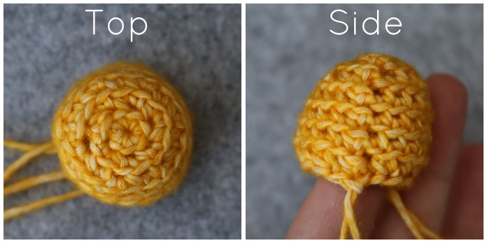 Stuff the ball, then sew it to your bouquet using the yarn end from Round 8.