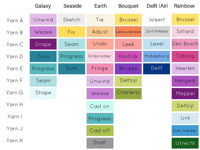 At the start of each part, there will be a key telling you which shades (A-K) to use for each Row/Round of your chosen colourway. This key relates to the information supplied for each colourway in the Reveal Post. Ruth Lambert had the brilliant idea of creating a cheat sheet for this: