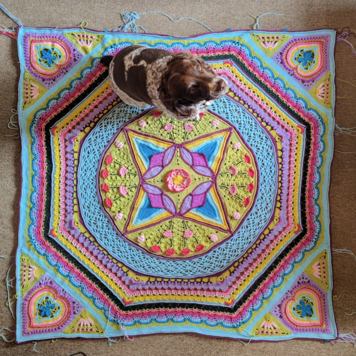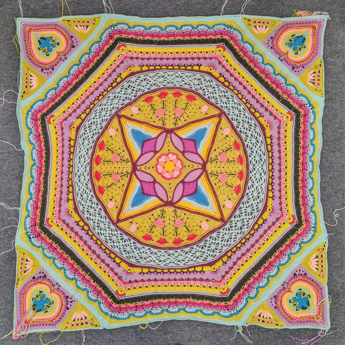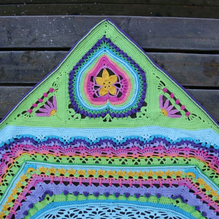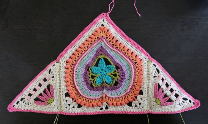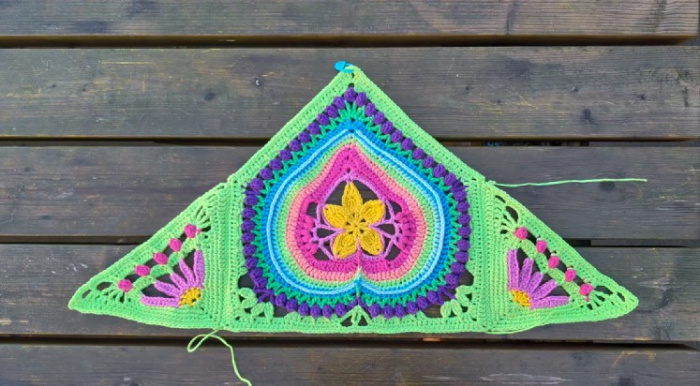 Hello and welcome to Part 11 of the Universe in Bloom CAL 2025. In this part, we will create four Giant Triangles by joining our Triangles (Part 10) and Heart Houses (Gauge Motif). Once we have added a border round to these Giant Triangles, we will add them to the Octagon created in Parts 1 to 9 to create a square. Once we have done THAT, we will add a few rounds, ready to start the border for the blanket in Part 12.