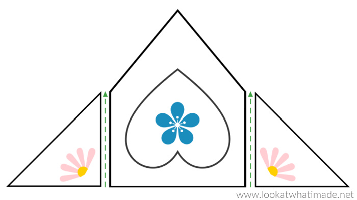 When you have joined one triangle to the heart house, join another triangle to the opposite side in the same way as above.