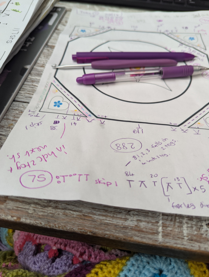 The maths just did not want to math. Finally, I let go of the notion that the maths HAD to math, and went with what my gut said would work. And it did! This is the moment adding all four corners FINALLY worked out. Lunchtime. At work. 16 August 2024.