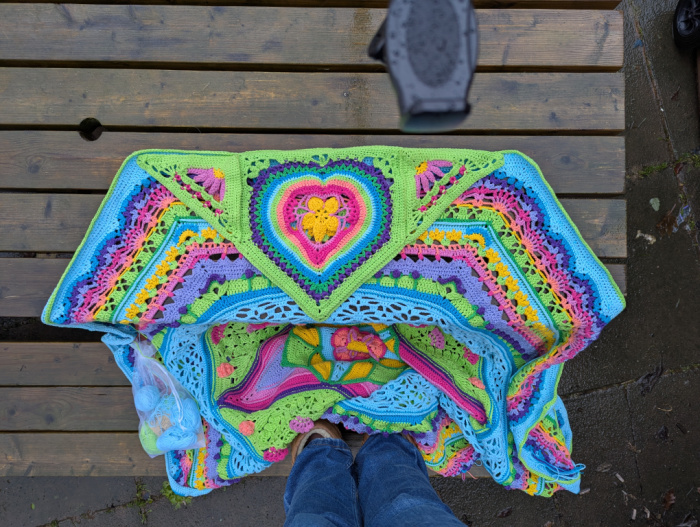 Yay! We are so close to having a completed blanket! I took her out for a photo this morning. I figured you’d like to share our frost if you are living in warmer parts of the world :)