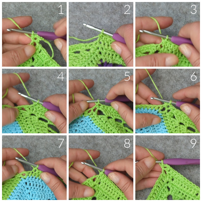 *Whispers* But I’d go up a hook size, both for this join and when joining the Giant Triangles to the Octagon!