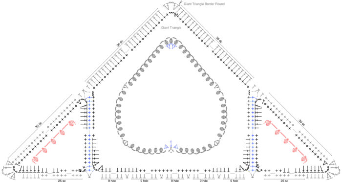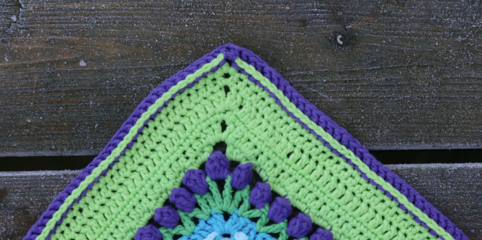 The Giant Triangle will look a tiny bit wonky, especially over the corners of the Triangles. Don’t worry about it. Remember to go back to your regular hook size for the Border Round!!