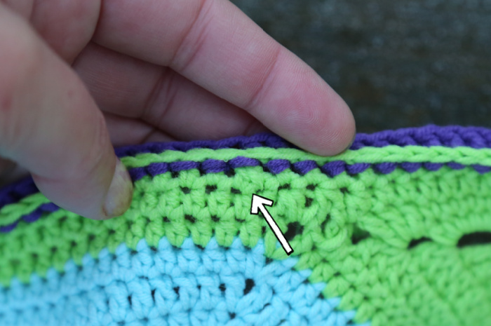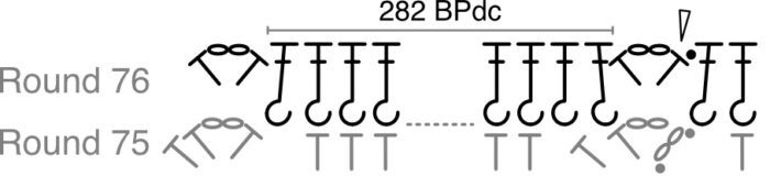 When doing this round, take special care when working around hdc2tog sts so that you don’t accidentally work around them twice.