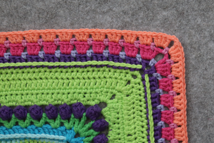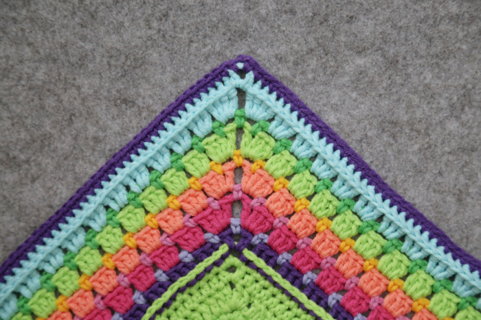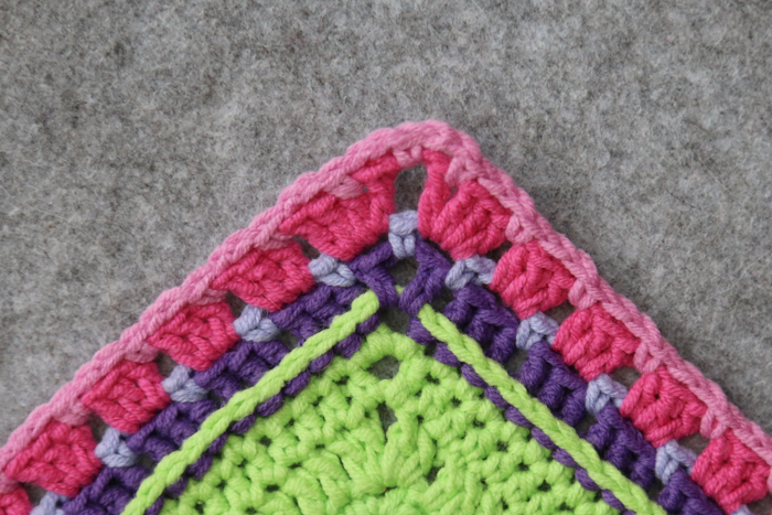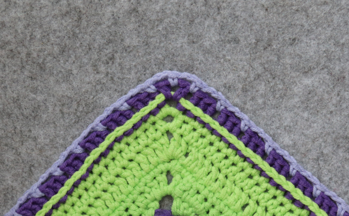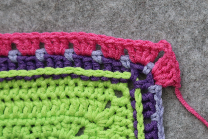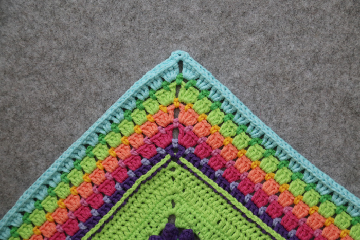 Fasten off and work away your ends if you are going to change colours for the next round, otherwise sl st into the next ch-2 corner sp.