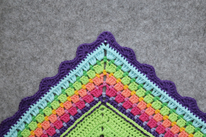 Rep from * to * 3 more times, omitting the last corner Scallop on the last repeat. Join to the top of the beg ch-3 with a sl st. Fasten off and work away your ends. ALL your ends. Yes, I know you haven’t been working them away as you went!!!