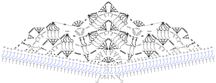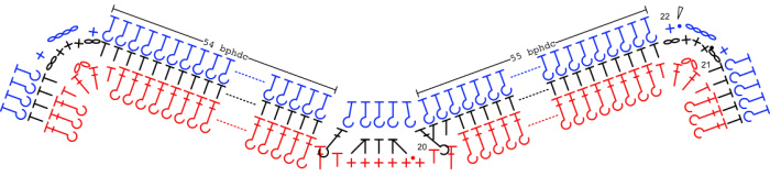 Stitch Count: 7 hdc2tog, 20 BPdc, 6 ch-1 sps, and 8 ch-2 sps