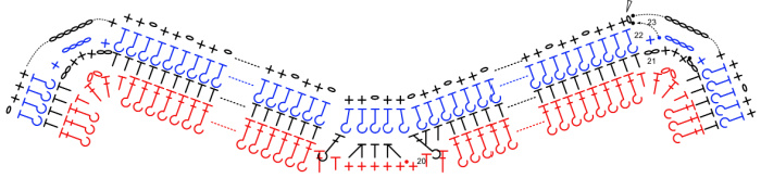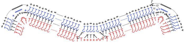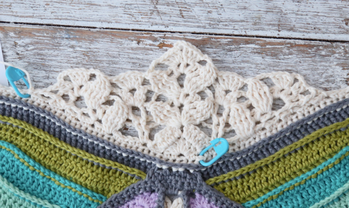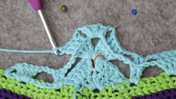 When working into Round 23, we will be working only into the ch-1 sps, except when making sl sts to get to the next ch-1 sp.