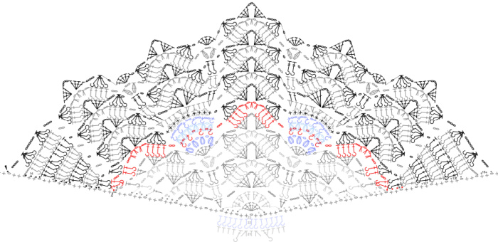 Stitch Count: 40 dc, 10 FPdc4tog, 4 FPtr4tog, 8 ch-1 sps, 19 ch-3 sps, and 2 ch-5 sps