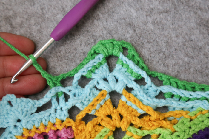 Before you start this round, take a moment to identify the ch-4 sp of Round 22 on any side.