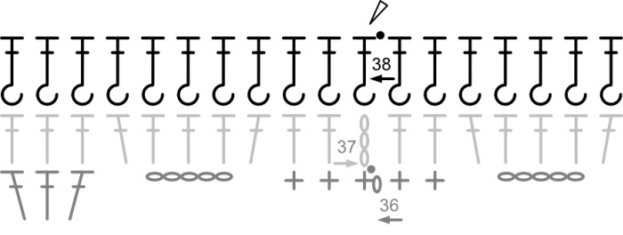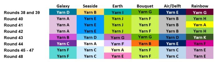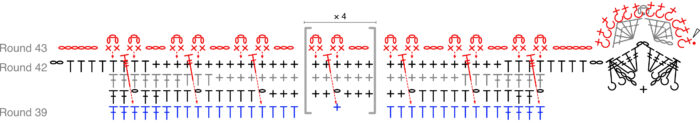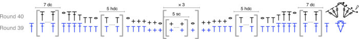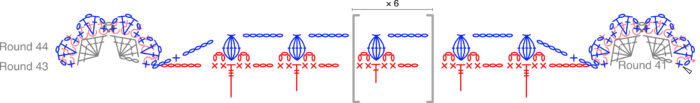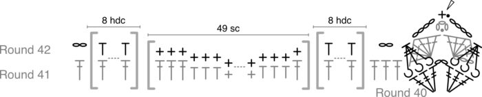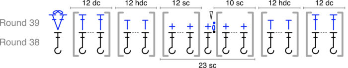 - When working into the skipped sts from Round 39, work in front of Rounds 40 – 42.