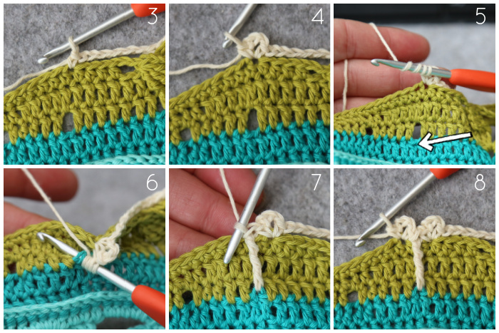 The photo tutorial below uses US Terminology. Please see the Special Stitches and Techniques Post HERE for Photo Tutorials and Chart Legend.
