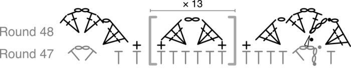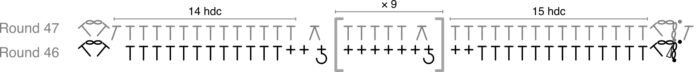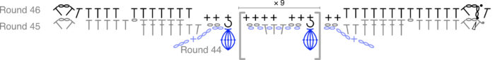 - When working into the skipped sts from Round 39, work in front of Rounds 40 – 42.
