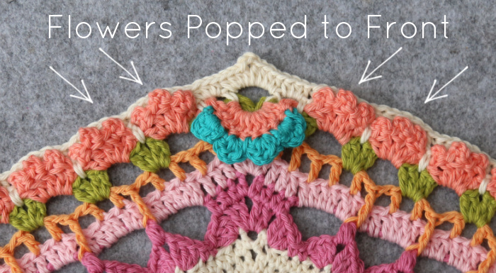 Before starting this round, make sure that you have popped ALL the Flowers to the front of your work. We will be ‘catching’ the Flowers as we go.