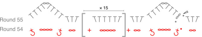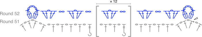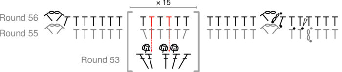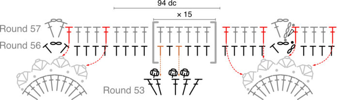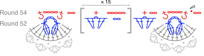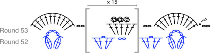 In this round, you will work only into Round 52, working OVER Round 53 where indicated.