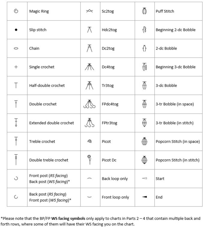 Stitches consist of posts (the bits that go into the stitches of the previous round) and loops (the horizontal ‘V’s formed by the tops of the stitches). Before you start with this pattern, it is vitally important that you know which ‘loops’ belong to which stitch or ‘post’, and vice versa.